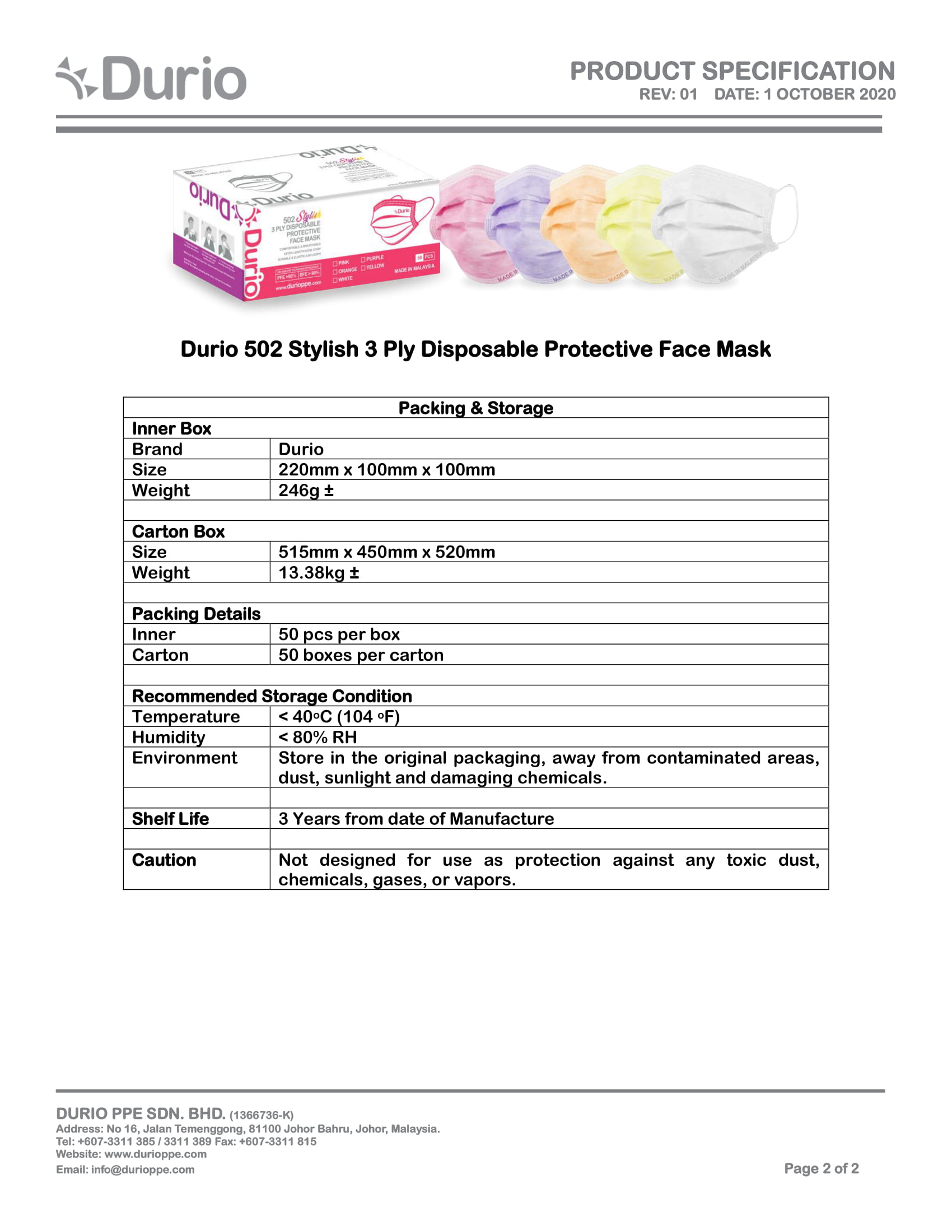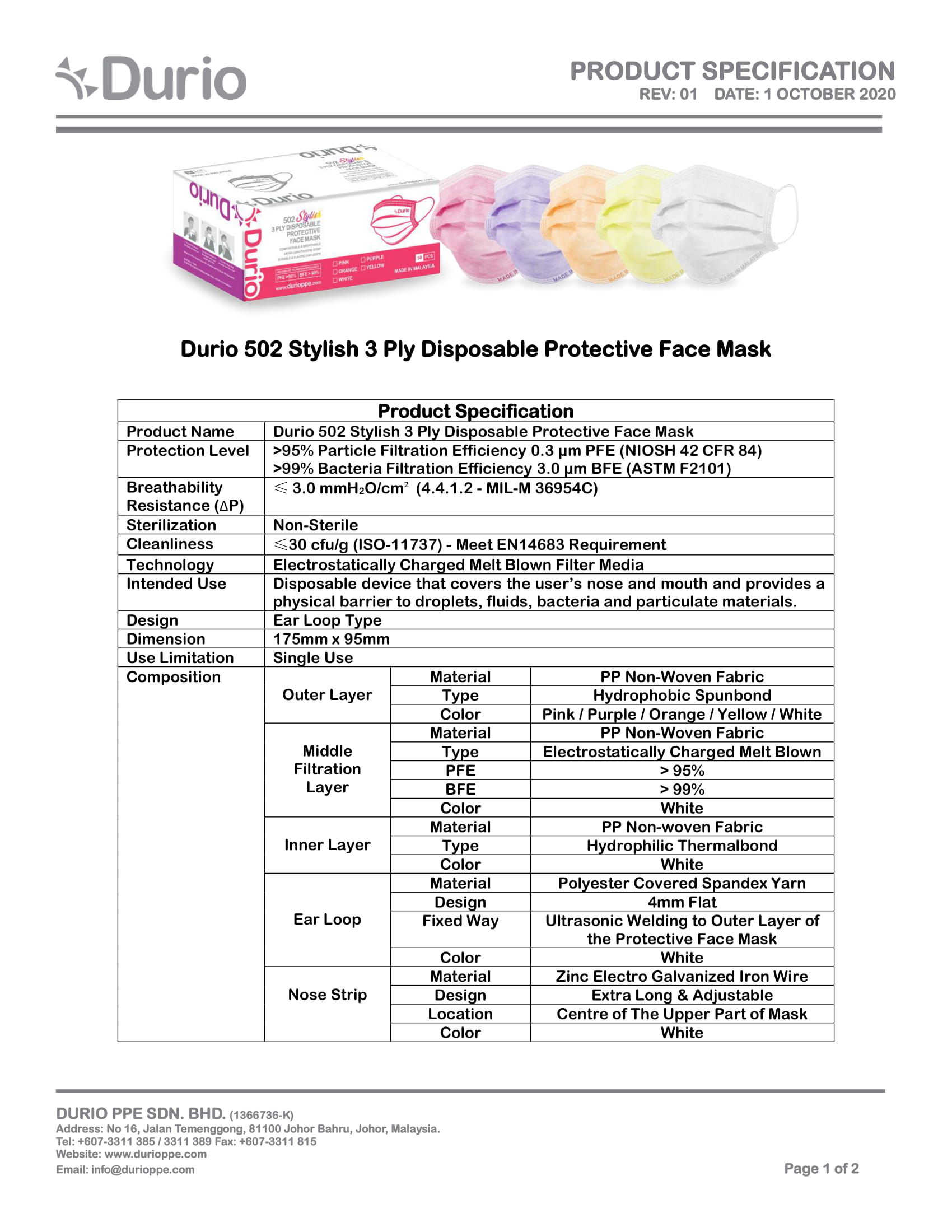 DRO Durio Mask Adult 502: 紫色(PURPLE)